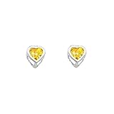 .925 Sterling Silver Rhodium Plated 4mm November Birthstone Heart Bezel CZ Solitaire Basket Stud Earrings for Baby and Children & Women with Screw-back (Citrine, Yellow)