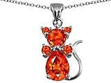 Star K 304668, 925 Sterling Silver Cat Pendant With Created Mexican Fire Opal crafted in 925 Sterling Silver Dimensions: Width: 10.00 mm Length: 20.00 mm. 1 Stone 1.50 Carats Pear Shape 8 x 6 mm Color: red- orange Clarity: Clean, 1 Stone 0.65 Carats Round 5 mm Color: red- orange Clarity: Clean, 4 Stones 0.60 Carats Round 3 mm Color: red- orange Clarity: Clean Free 18 inches chain included . Finejewelers Style Number: 304668. ...